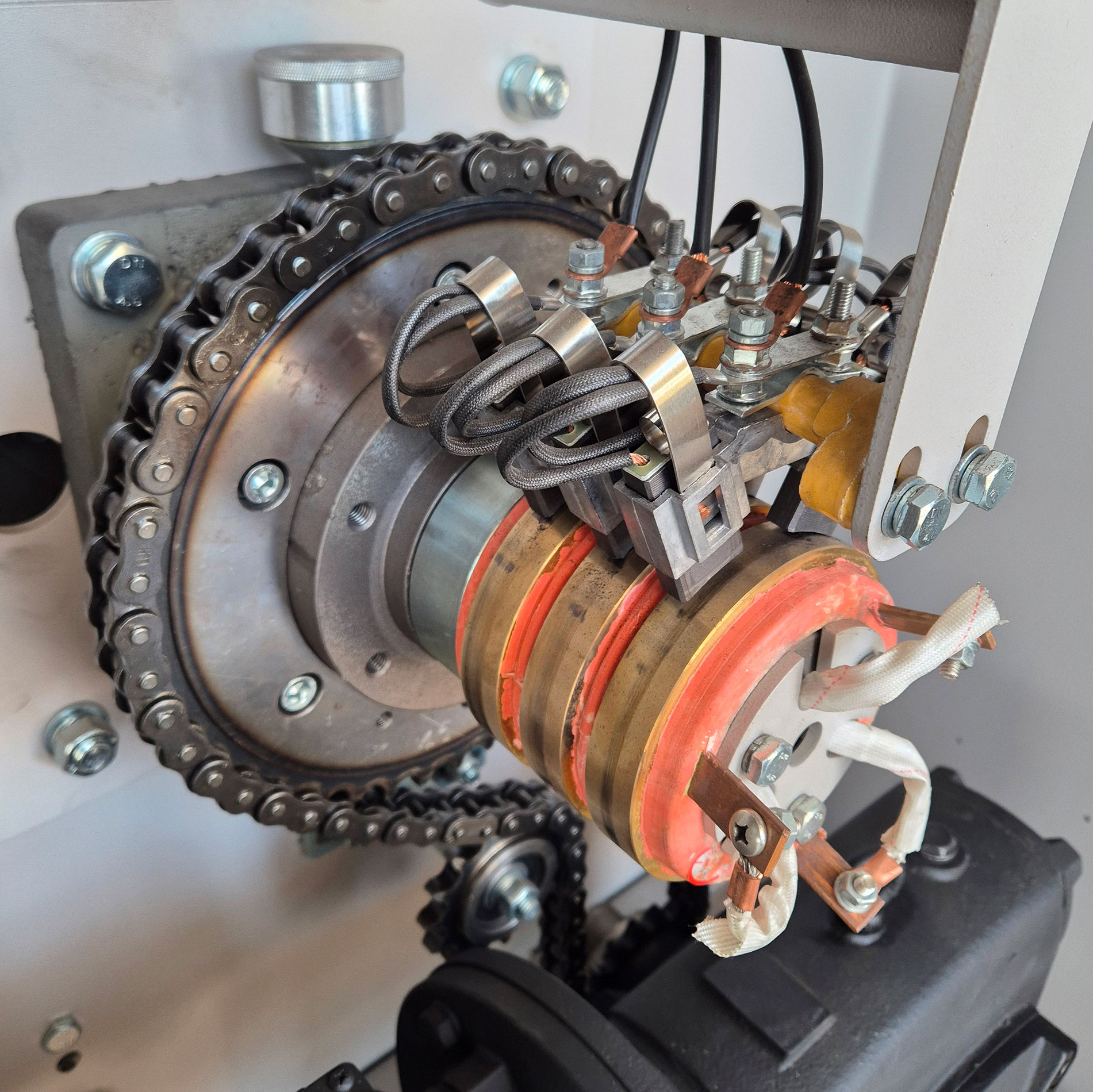 Может возникнуть вопрос, а как тогда к ТЭНам каландра, если они непрерывно вращаются, подается электричество? Делается это с помощью классических узлов, как в метро или у троллейбуса. С той лишь разницей, что из-за чрезвычайно низкой скорости вращения гладильного вала, узлы эти (на одной и на другой полуоси вала) чрезвычайно надежны и долговечны.